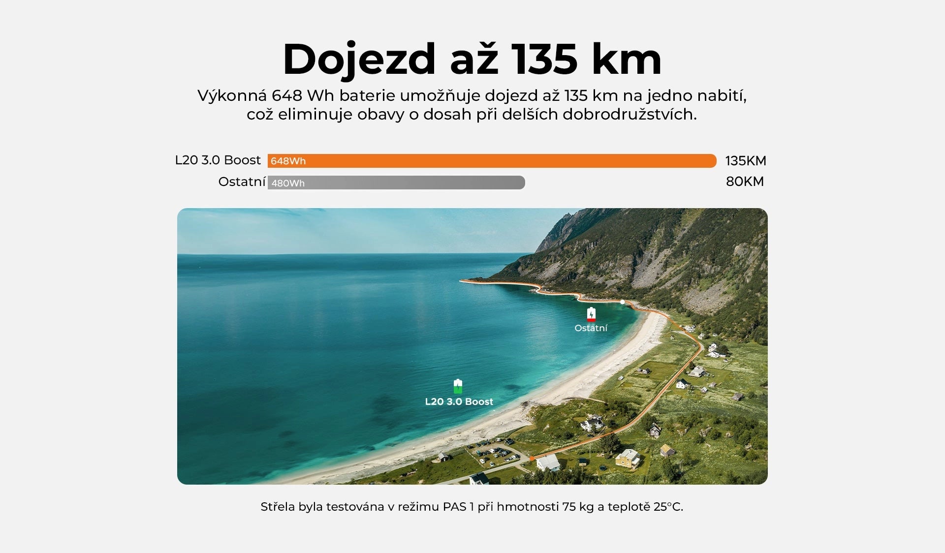 Kolo odpovídá evropským předpisům a má certifikát TÜV, zajišťující bezpečné a legální používání na silnicích v EU a Slovinsku. S 624 Wh baterií poskytuje až 135 km dojezdu na jedno nabití, což je ideální pro delší vyjížďky bez starostí s nabíjením.