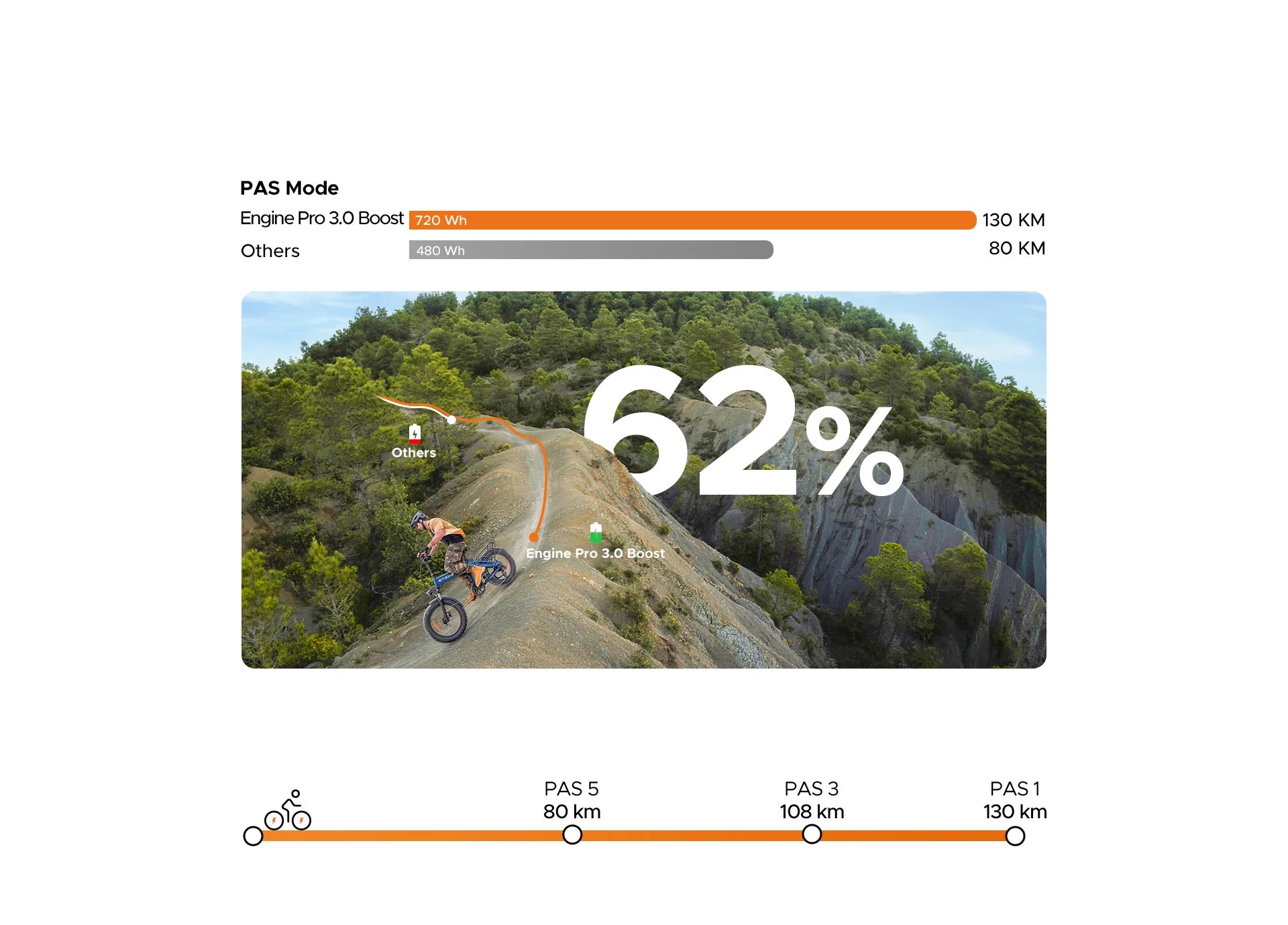 ENGWE Engine Pro 3.0 Boost je najnovejša generacija zložljivega električnega kolesa iz serije Engine, zasnovana za zmogljivo in udobno vožnjo po mestu ali zahtevnejšem terenu. Zmogljiv motor omogoča odličen pospešek in učinkovito pomoč pri vožnji v klanec, zmogljiva baterija pa zagotavlja dolg doseg z enim polnjenjem.